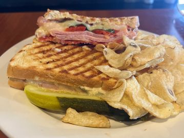 turkey, avocado, tomato, apple-wood smoked bacon, VT cheddar, and pesto mayo