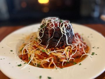 Made with locally raised wagyu beef over linguini with house made marinara.