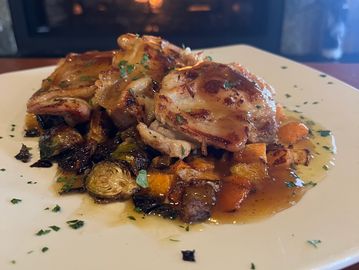 Served with roasted brussel sprouts and a roasted root vegetable medley.