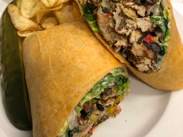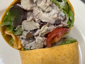 Candied walnuts, cranberries, and grapes in your choice of honey-wheat or sundried tomato wrap with lettuce, tomato, and onion.