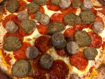 Basil tomato sauce, housemaid meatballs, pepperoni, Vermont sweet Italian sausage and mozzarella.