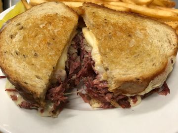 Swiss, 1000 Island dressing, and sauerkraut on marbled rye.