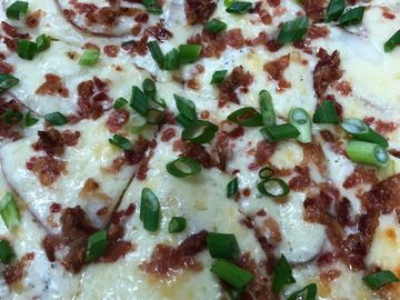 Thinley sliced potatoes, house made boursin, parmesan, cheddar, applewood smoked bacon, and scallions.
