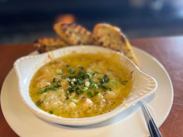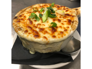 Simmered in a rich beef broth, with croutons and gruyere cheese