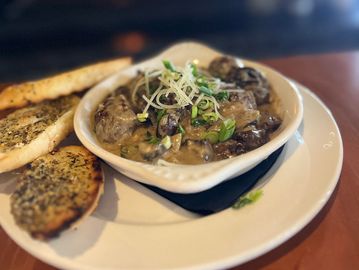 House made wagyu meatballs and roasted mushrooms in a Jasper Hill blue cheese cream. Served with crostinis.