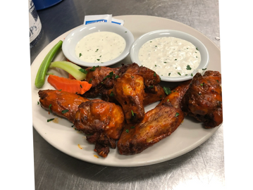 Dry rubbed, roasted, and lightly tossed in choice of sauce: buffalo, blackberry BBQ, or smoked honey Sriracha.