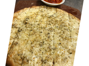 Topped with herbs de provence, fresh garlic, Parmesan, and shredded mozzarella. Served with marinara
